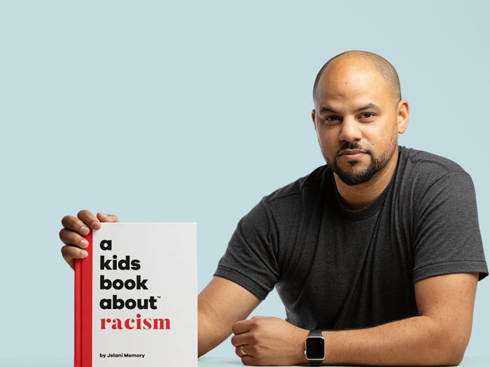 … [crosstalk] back in 2018. I wrote a book for my kids titled A Kid’s Book About Racism. I had five at the time with one on the way blended [crosstalk] four.